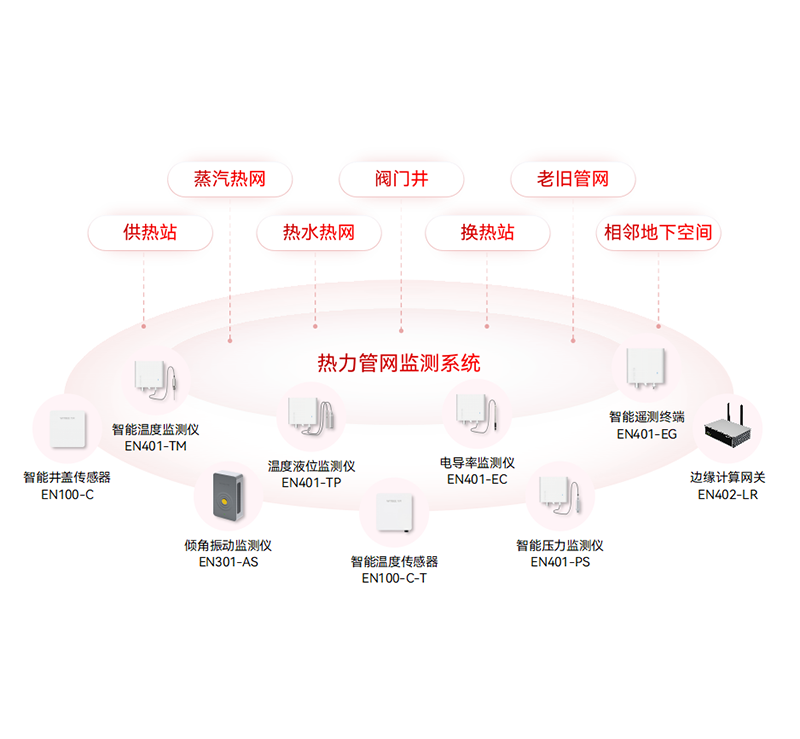 對供熱管網的蒸汽管道排潮孔溫度、疏水箱壓力,熱水管網土壤溫度,管網流量、壓力,井蓋異動等指標進行實時監測,構建供熱管網綜合管理的動態監測網絡,保證整個城市供熱穩定安全運行。